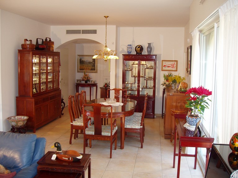 Une salle de séjour spacieuse de 60 m2 meublée avec saveur orientale inclut et une grande télévision à écran plat incurvé haute définition, donnant accès direct à NETFLIX, RAKUTEN TV , TV+ etc...et aux principales chaînes locales et Européennes ; une salle à manger pour 8 personnes + vitrines en bois de rose . Les 3 chambres à coucher sont dotées de grands placards (étagères/cintres), toutes avec des lits grande taille (190x180 cm).